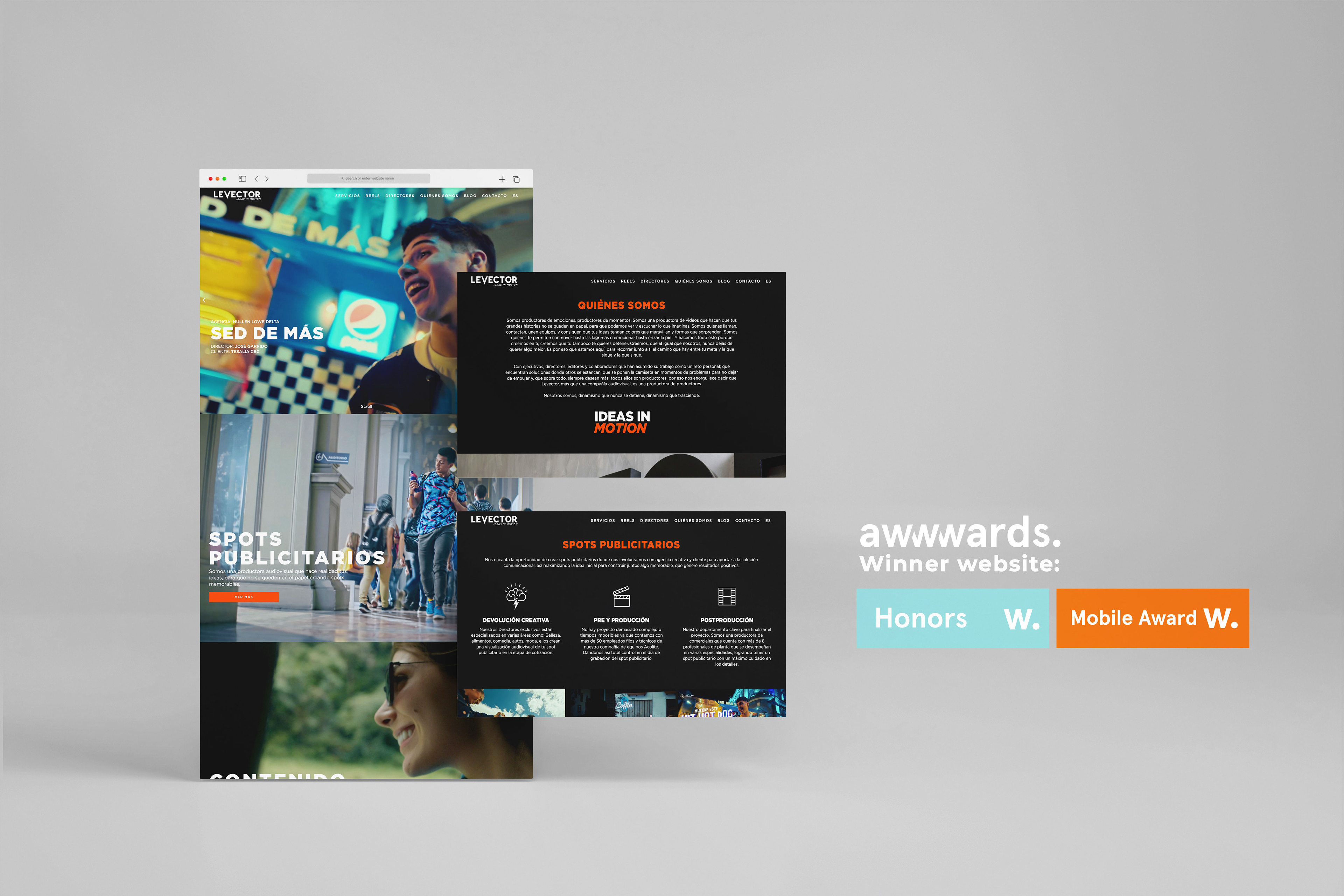 Redesign of the website of Levector, a film agency of advertising and films based in ECU
